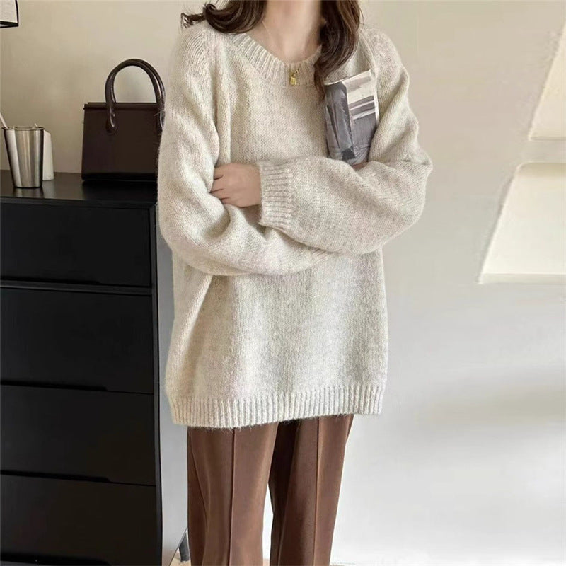 This women's sweater features a round neckline and a loose fit, offering a relaxed shape that is especially comfortable to wear. Designed as a pullover, it is excellent as a simple layer for various outfits. Available in many colors, it adds versatile pairing options to everyday wardrobes. The one-size design adapts to different body types, while the classic cut allows combinations with trousers, skirts, or layered looks.