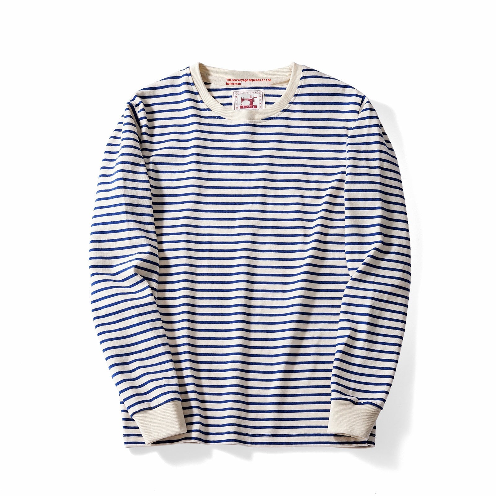 This striped men's shirt features a round neckline and a straight cut, making it easy to pair with various outfits. The long sleeves provide protection on cooler days, while the pullover style remains simple and versatile for everyday use. Suitable for both casual and semi-relaxed occasions, it offers a clear striped pattern in contrasting shades.