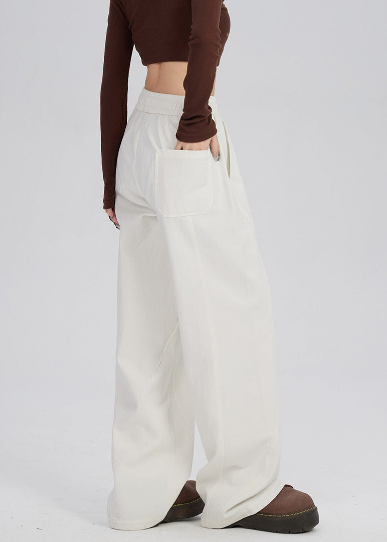 These women's trousers feature a silhouette with wide legs and a straight cut, providing a structured yet relaxed fit. The mid-rise waistband offers balanced coverage and an easy-to-match look suitable for both everyday wear and semi-formal occasions. The plain color design increases versatility, making the trousers easy to pair with shirts, tops, or jackets throughout the year.