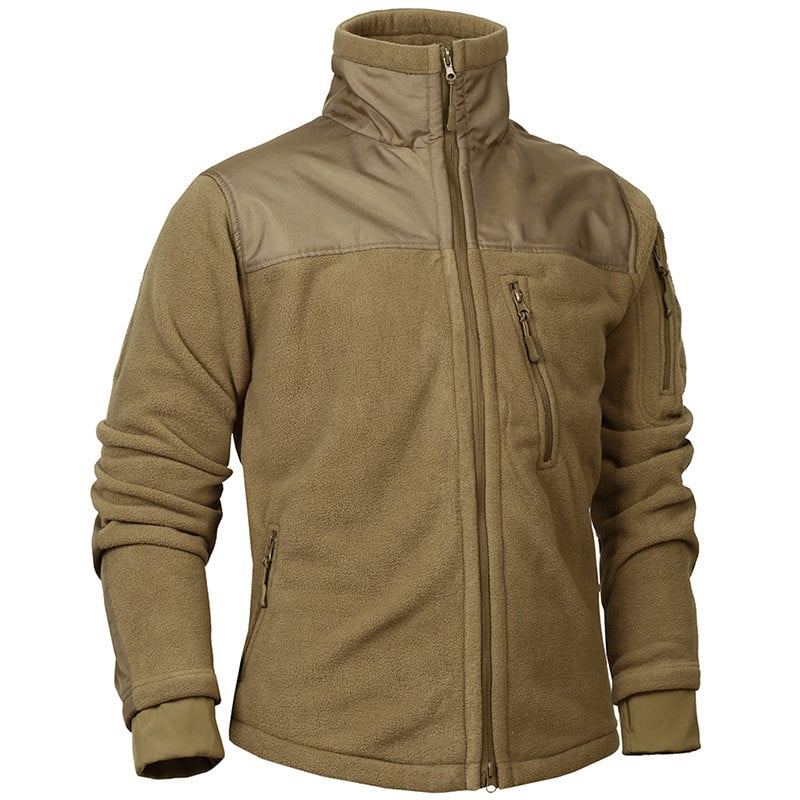 This men's winter camouflage jacket is designed for outdoor conditions and features a fleece lining for the cold season. The hooded design along with protective features such as sun protection, insect repellent, and camouflage pattern make it ideal for camping, hiking, and climbing. Its practical design ensures functionality for various outdoor activities.