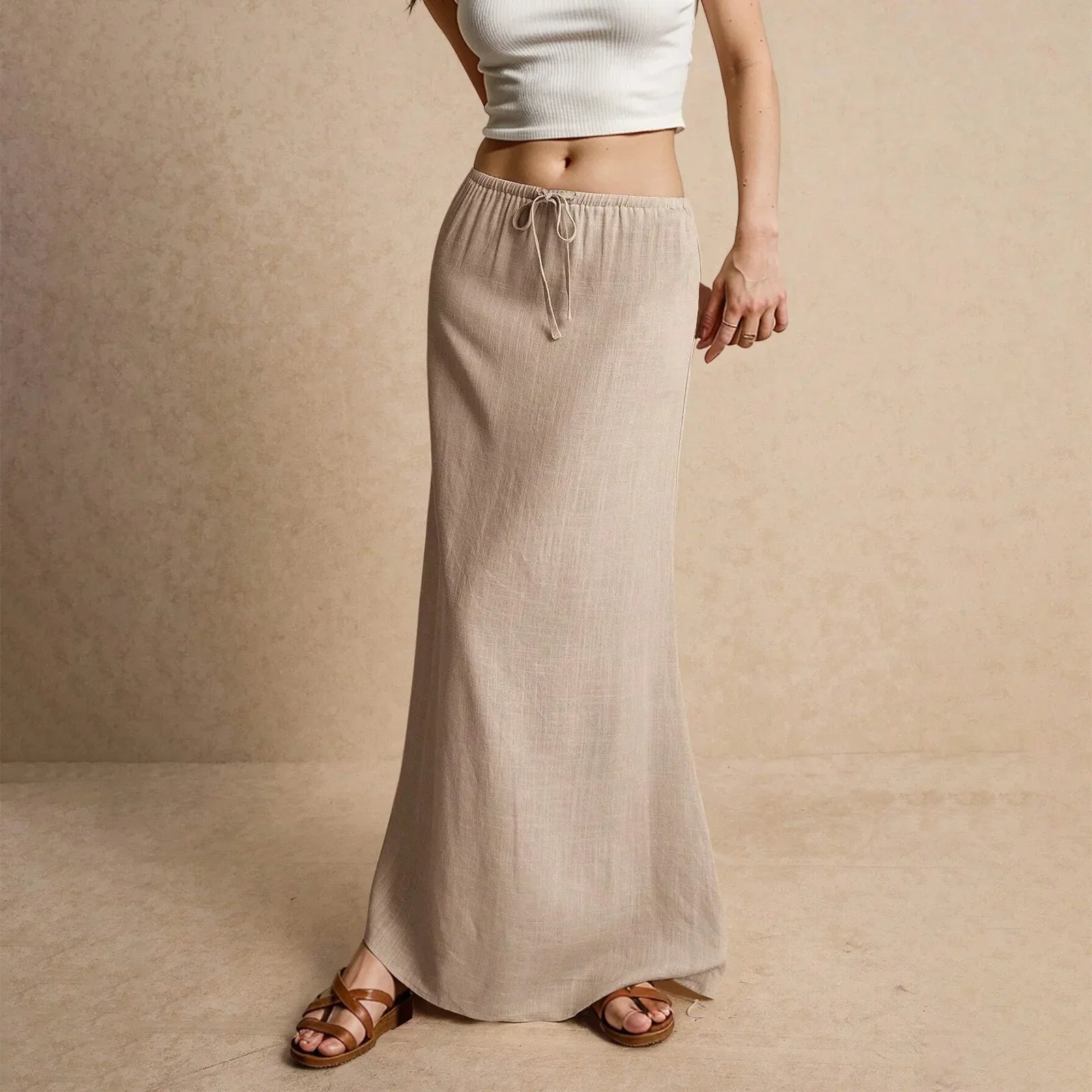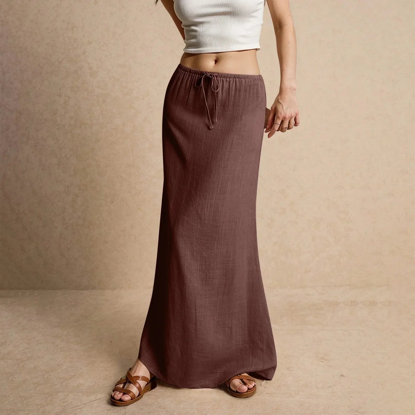 Dieser Damen-Maxirock hat eine volllange Form mit einer natürlich fließenden Silhouette. Der verstellbare Kordelzugbund ermöglicht eine individuelle Passform, während die leichte Konstruktion angenehme Bewegungsfreiheit unterstützt. Die saubere Saumverarbeitung sorgt für einen dezenten, eleganten Abschluss und macht den Rock vielseitig kombinierbar für unterschiedliche Outfits und Anlässe.