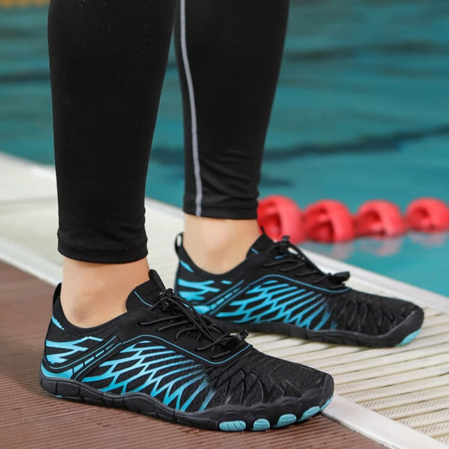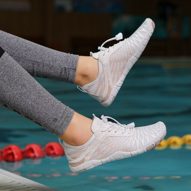 Diese Barfußlaufschuhe sind so konzipiert, dass sie die natürliche Fußbewegung durch eine minimalistische Struktur unterstützen, die das Gehen ohne Schuhe realitätsnah nachbildet. Die flexible Sohle folgt der natürlichen Abrollbewegung des Fußes, während das atmungsaktive Obermaterial für Luftzirkulation sorgt und die Füße bei Aktivität trocken hält. Dank ihres geringen Gewichts und vielseitigen Designs eignen sich die Schuhe ideal für Spaziergänge, leichtes Joggen und Outdoor-Aktivitäten bei trockenem Wetter.